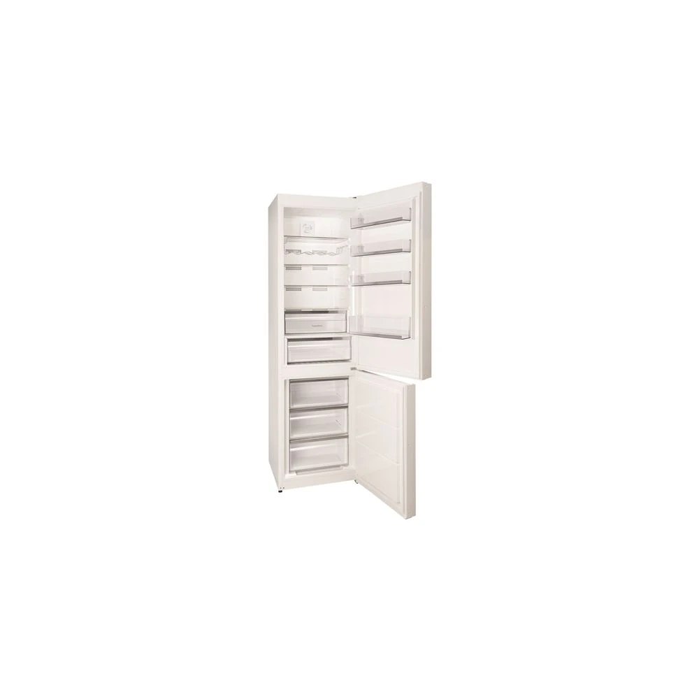 Klassisk og stilrent køle fryseskab i hvid, energiklasse E. Dobbelt LED sidebelysning, FreshZone og Full NoFrost.