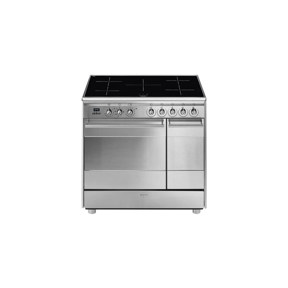 90 cm induktionskomfur med ovne (1 multifunktion), rustfrit stål.