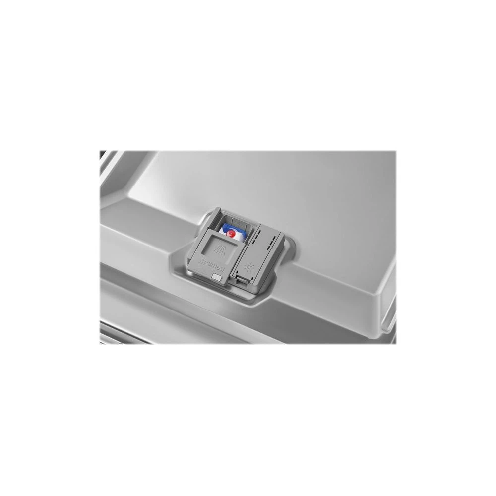 Opvaskemaskinen har en praktisk bestikskuffe og en højdejusterbar øvre kurv.